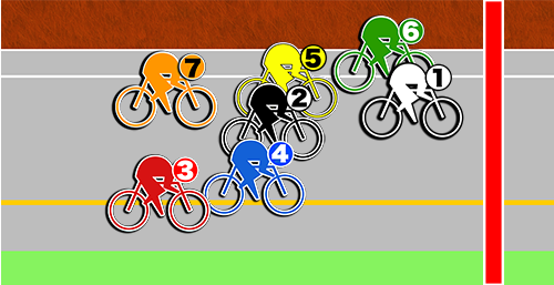 ❺河崎前叩きに行きそこに合わせて❹根本も動いて中団取りにくる。