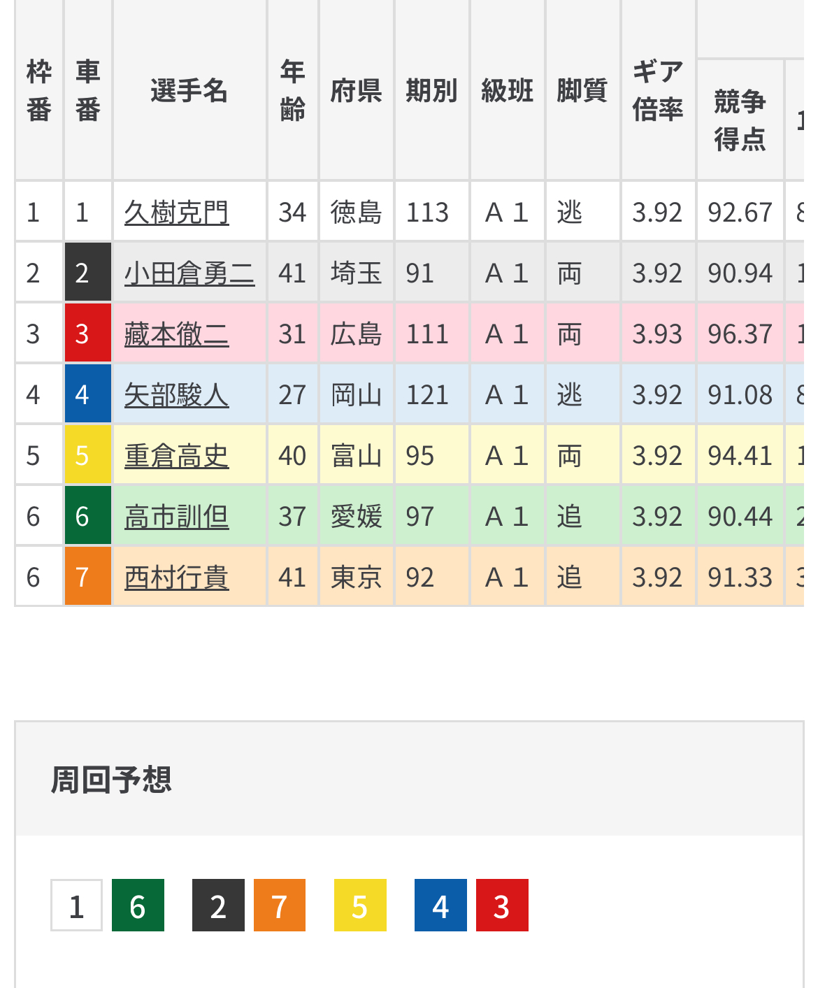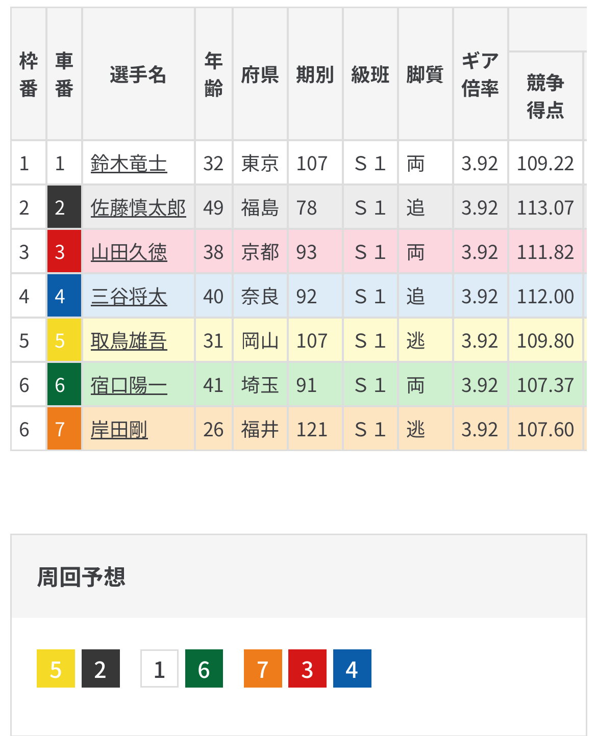 前で受ける久樹が矢部の上昇に併せて誘導を切り突っ張り模様で矢部の出方警戒となれば腹を括る久樹の先行になりそうで矢部は後方6番手で持ち味の先行ができないとなればレースは波乱。