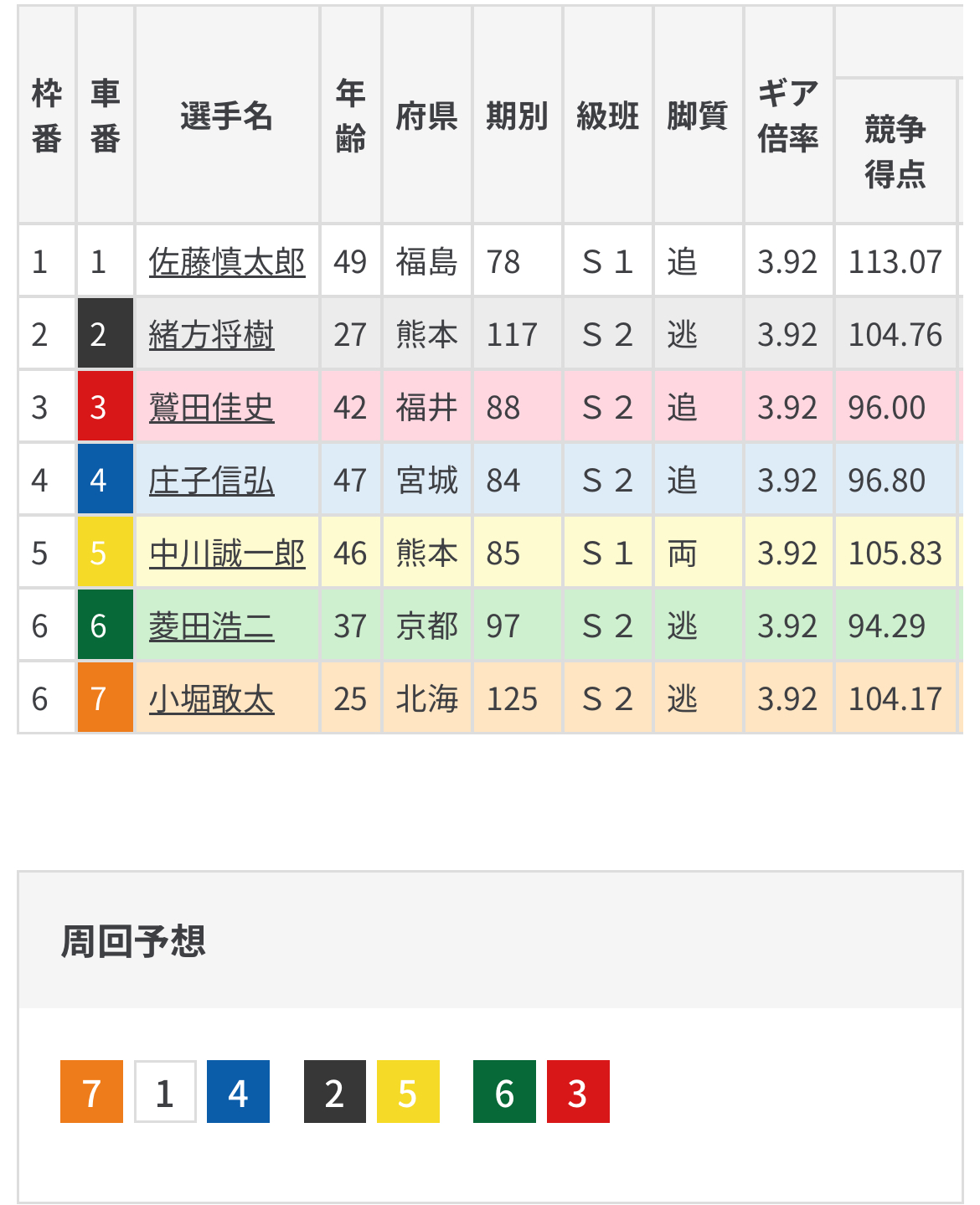 昨日は打鐘で首もげるくらい後ろを振り返りダラダラと緩めたあげくに格清に叩かれ内でモゴモゴして7着と大失態犯した緒方が昨日迷惑をかけた中川と再度連係。