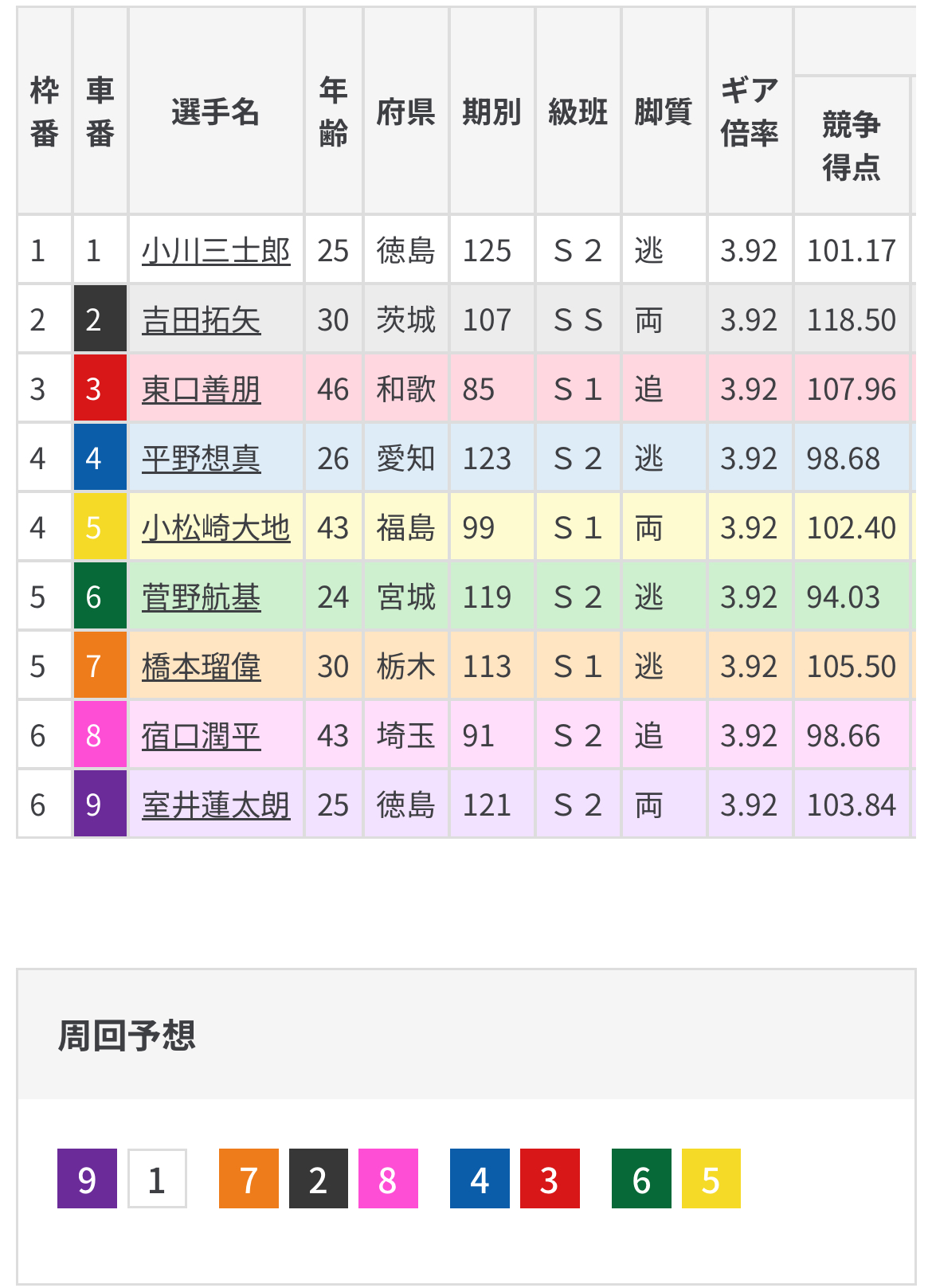 今回はS級2戦目で9車立て前回の静岡は準決勝、決勝は単騎でほぼ参考にならず