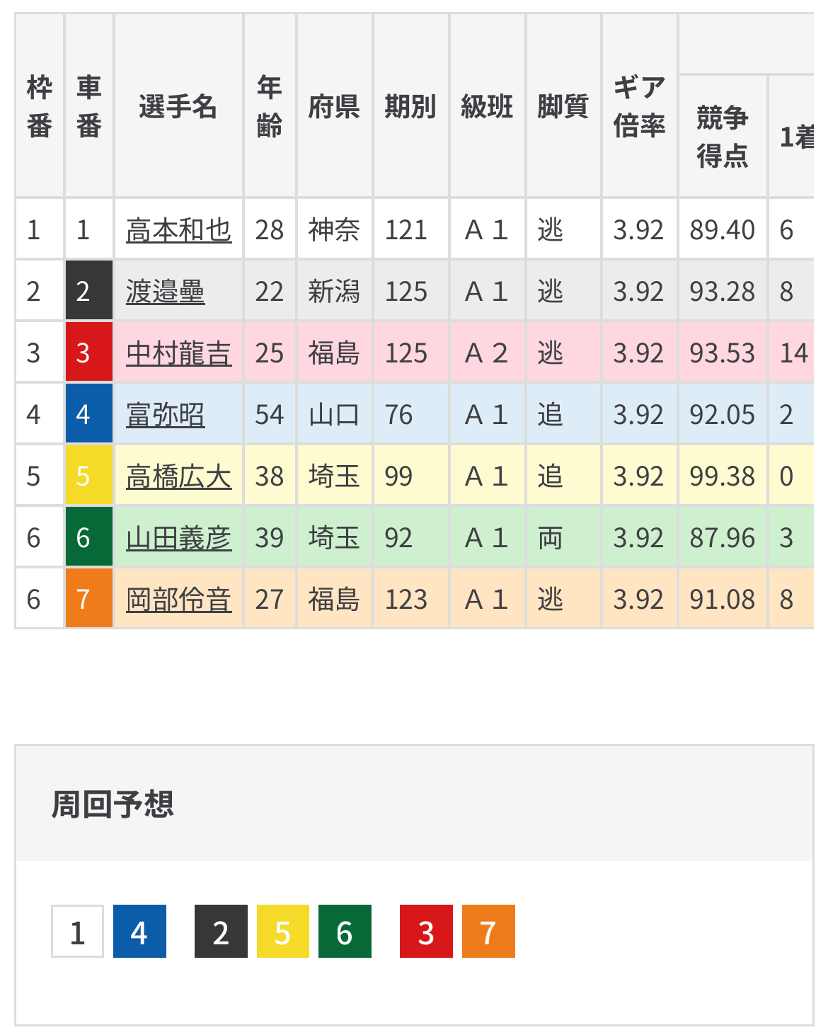 決勝は少し鬼門となっている中村だがココは福島同士で岡部が番手なら長い距離を踏んでもくることも