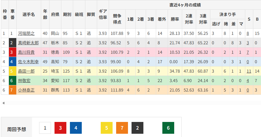 素直に捲りきるなら④佐々木が追走を外すのは大前提とし、③島川が追走できるかどうか。