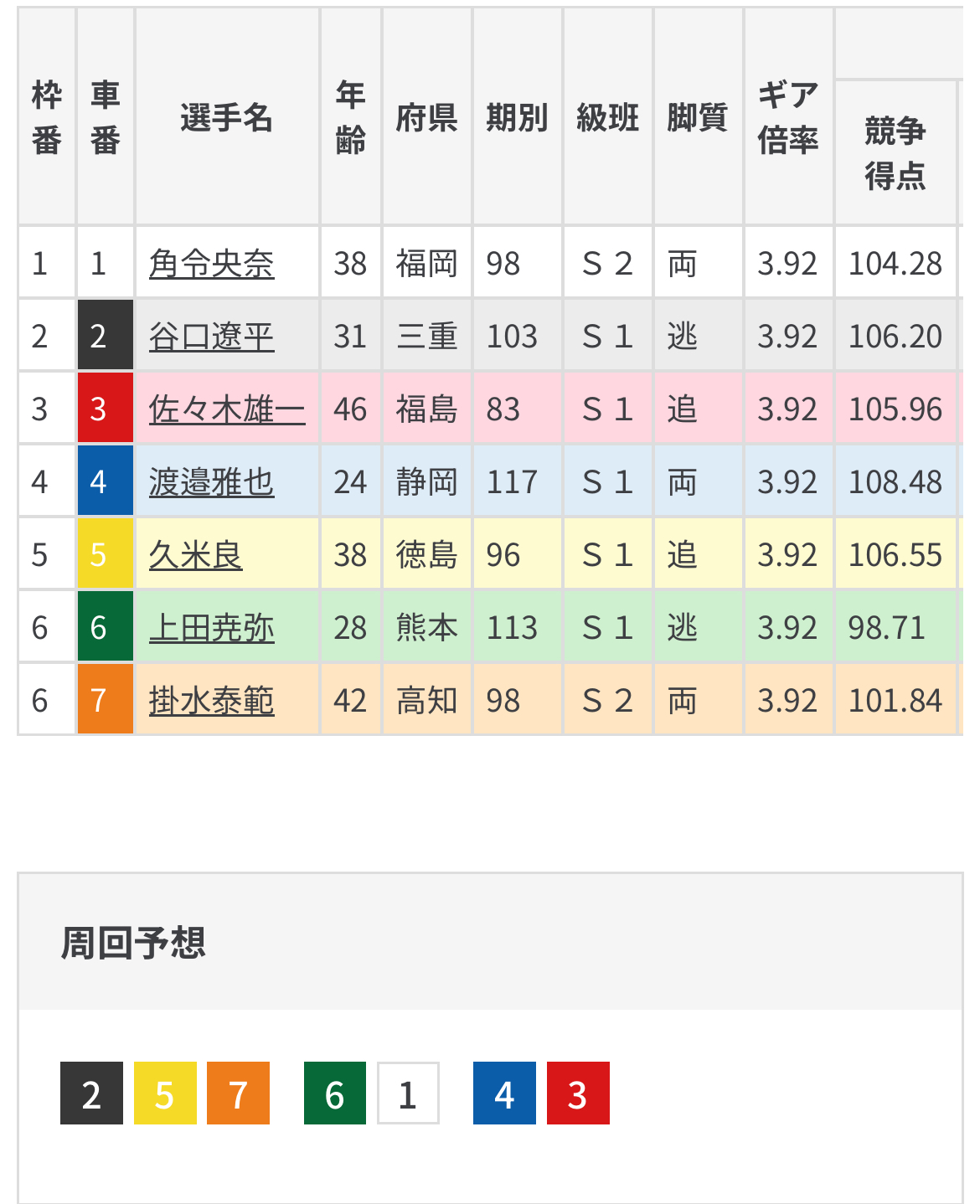 相手には番手を回る角令央奈に番手回る久米