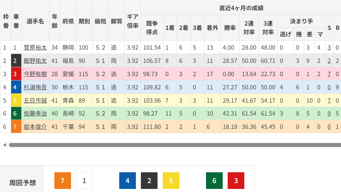 ⑦岩本は中団主張してきそうで、⑥佐藤が突っ張られる形になる。