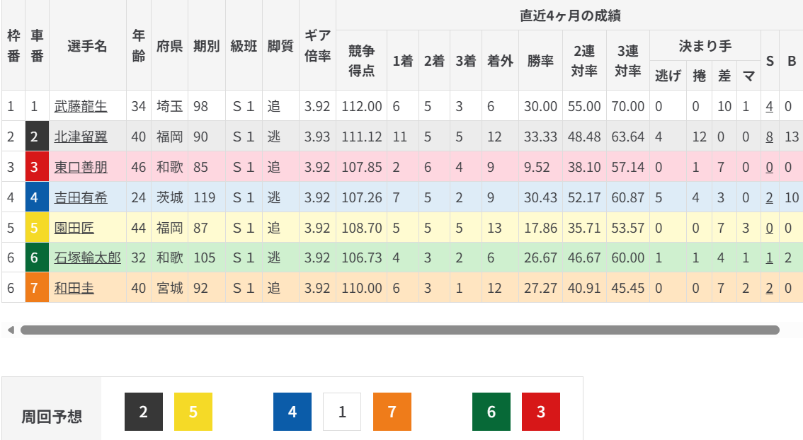 [小倉12R : S級初特選] (民間締切時刻 20:25)