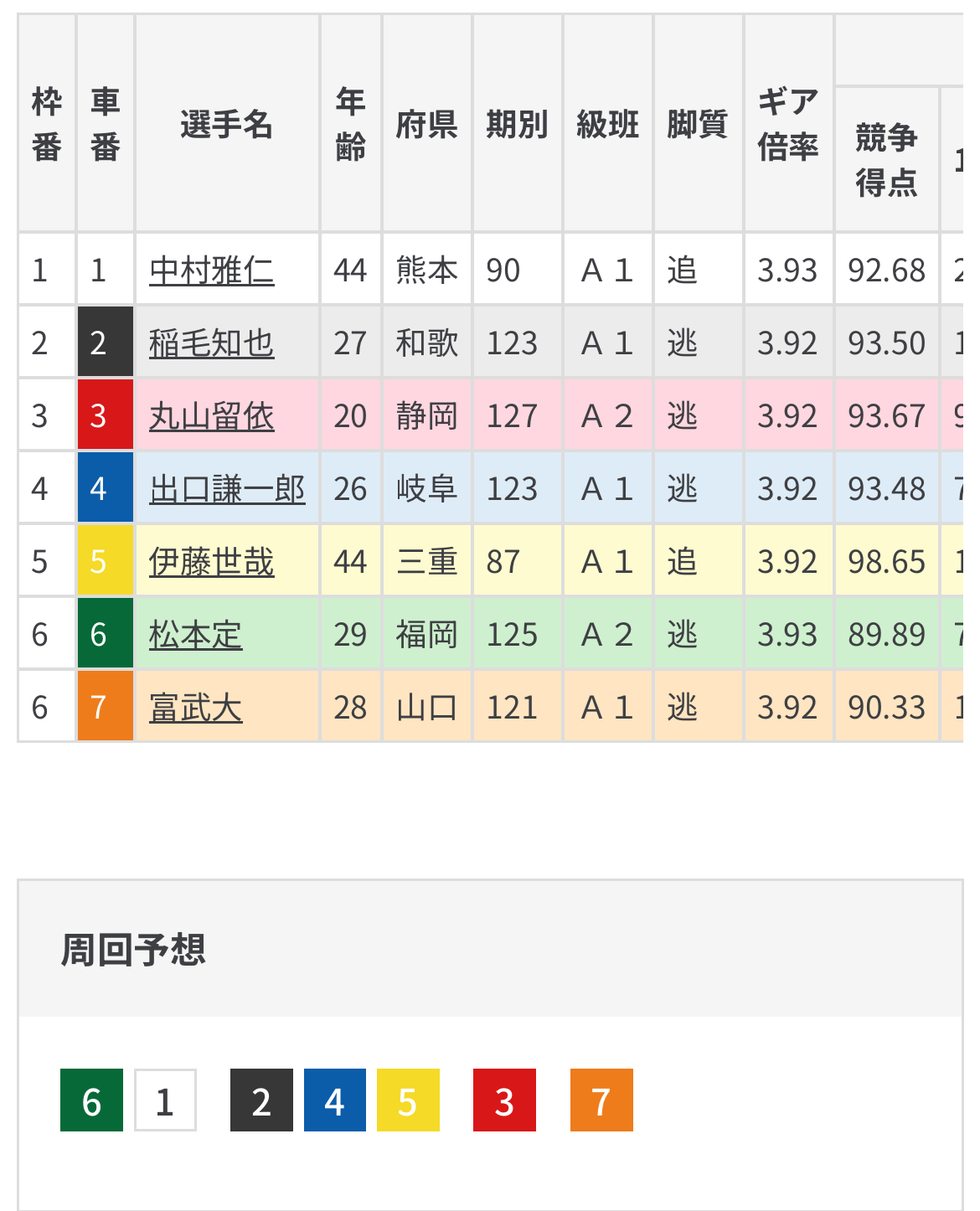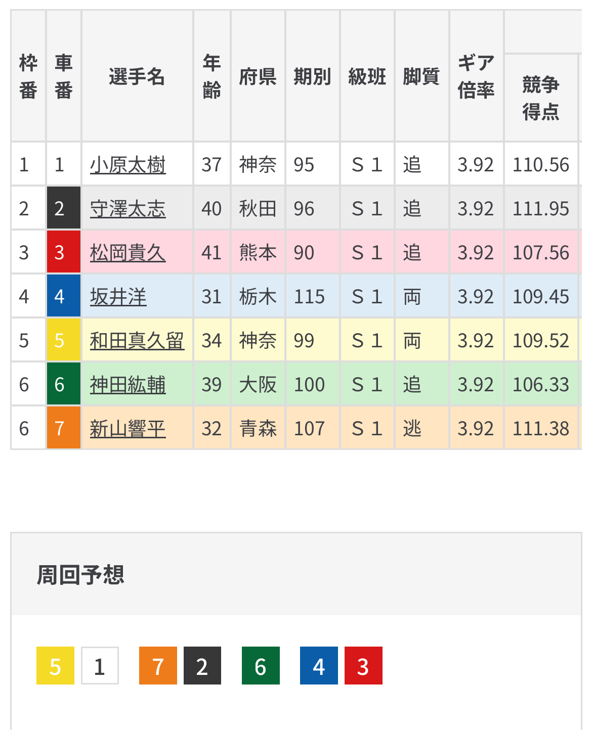 まさかとは思いますが高橋晋也の番手捲りも少し狙いたい。