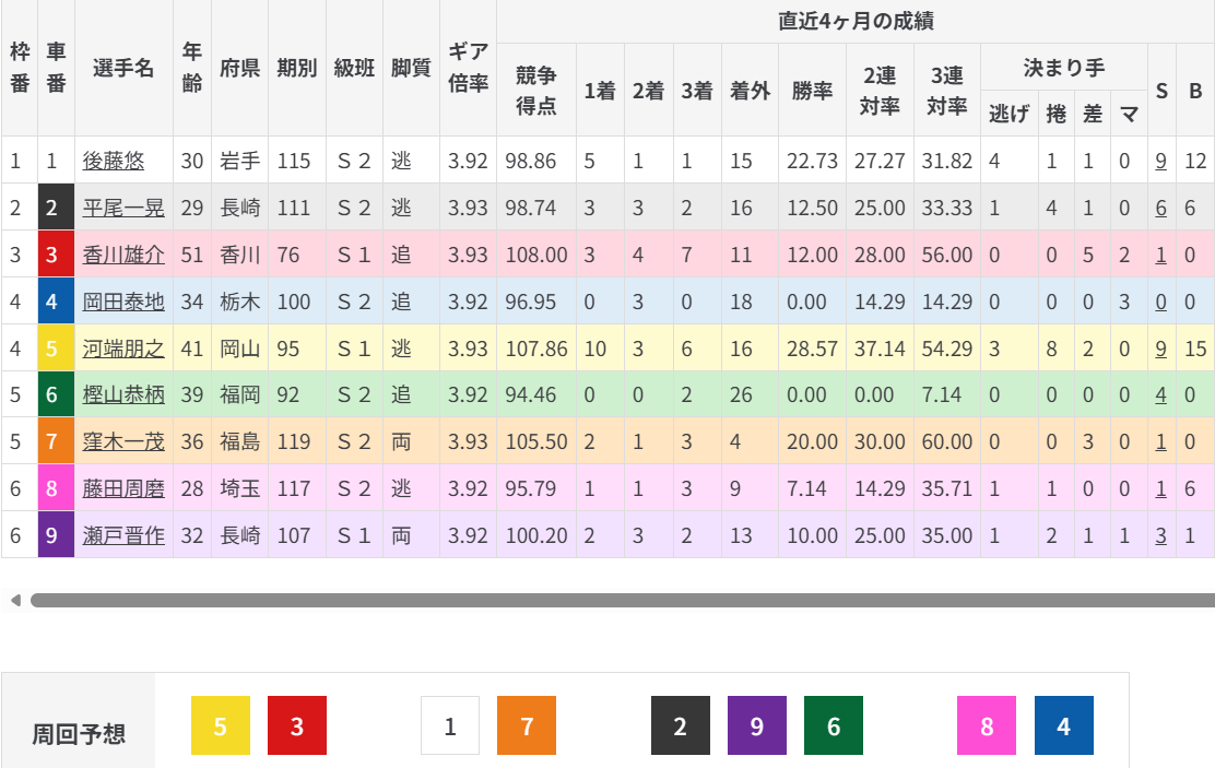 [静岡10R : S級一予選] (民間締切時刻 15:07)