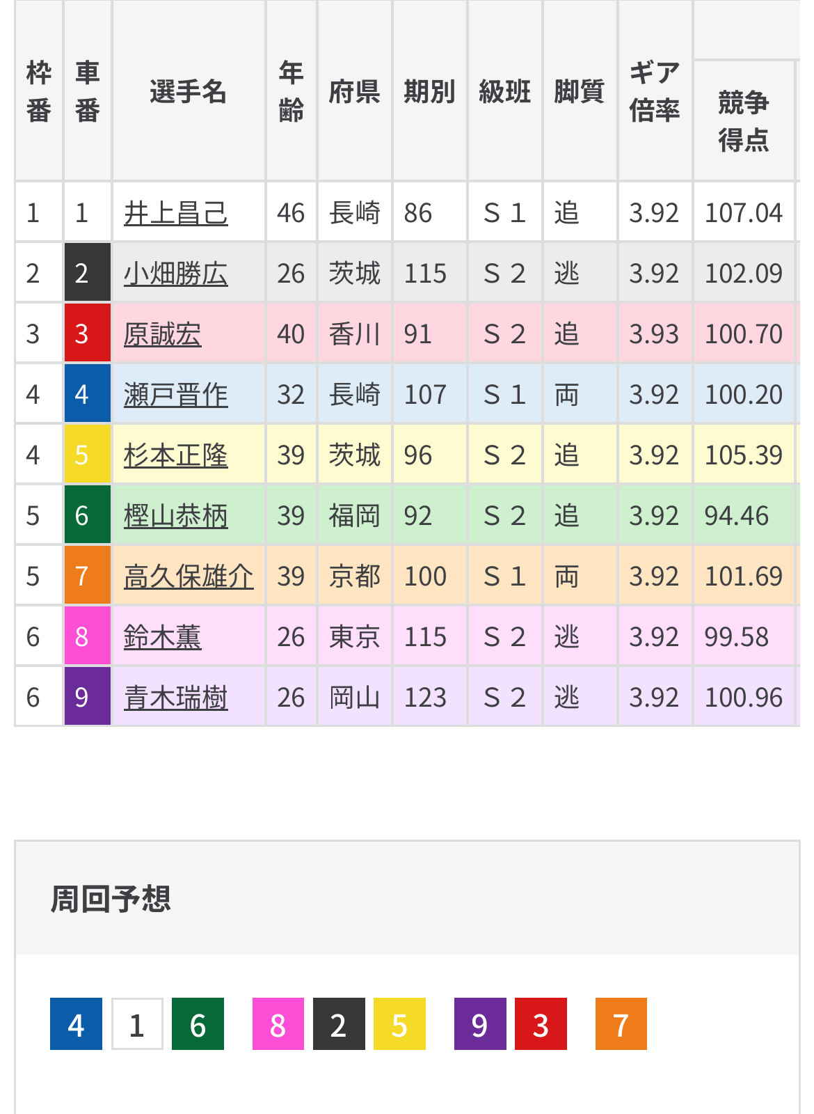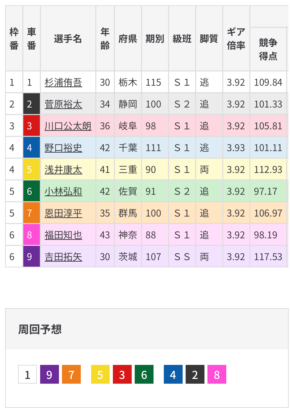 そんな野口が先行となってしまえば非常に他のラインは厄介となるも野口がペースになる前に杉浦が強引にでも主導権奪う形となりそう。