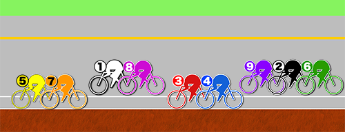 南関東勢3車で先頭は静岡の⑨日高選手。