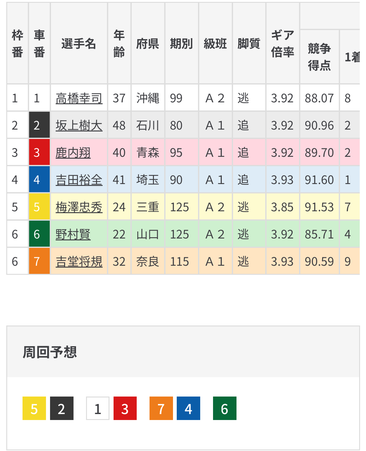 そんな阿部は初日失敗の反省も込め先行勝負となりそうで松岡がサポートし小川を引き込む走りをしてくる。