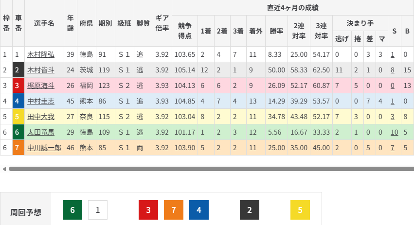 ②木村は3番手絶好にはなるが、①木村が番手発進でガツンと抜け出すタイプではなく、②木村の外は九州勢で塞がれてる可能性大。