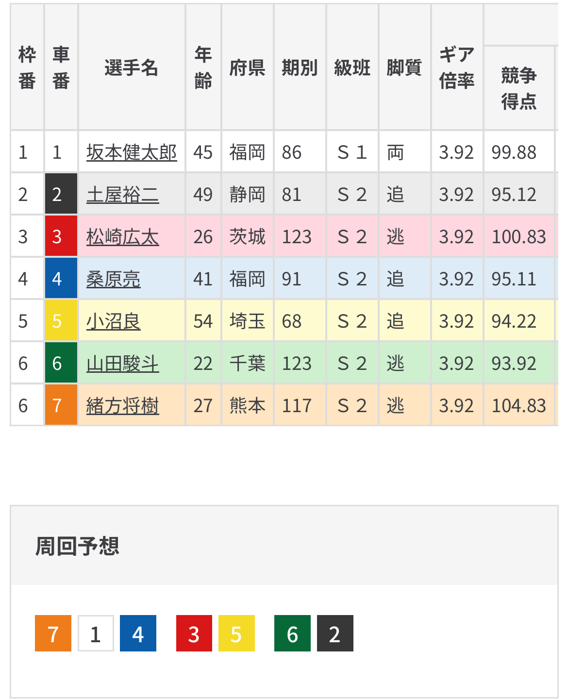 本命ラインの緒方はカマシ、捲り得意なだけに松崎は後方に追いやった緒方に睨みを利かせながらとなれば緒方は仕掛けずらくなりそう。