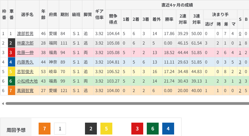 スタートが速い選手もいない中で、71/25/364で並ぶなら③佐藤の先行は切りたい。