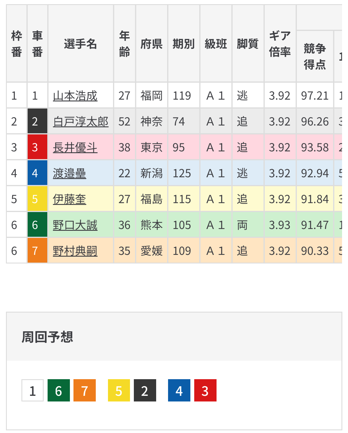 状態はずっとイマイチだが一瞬のダッシュ力はある地元山本が3車ラインで積極的に駆けることになりそう。
