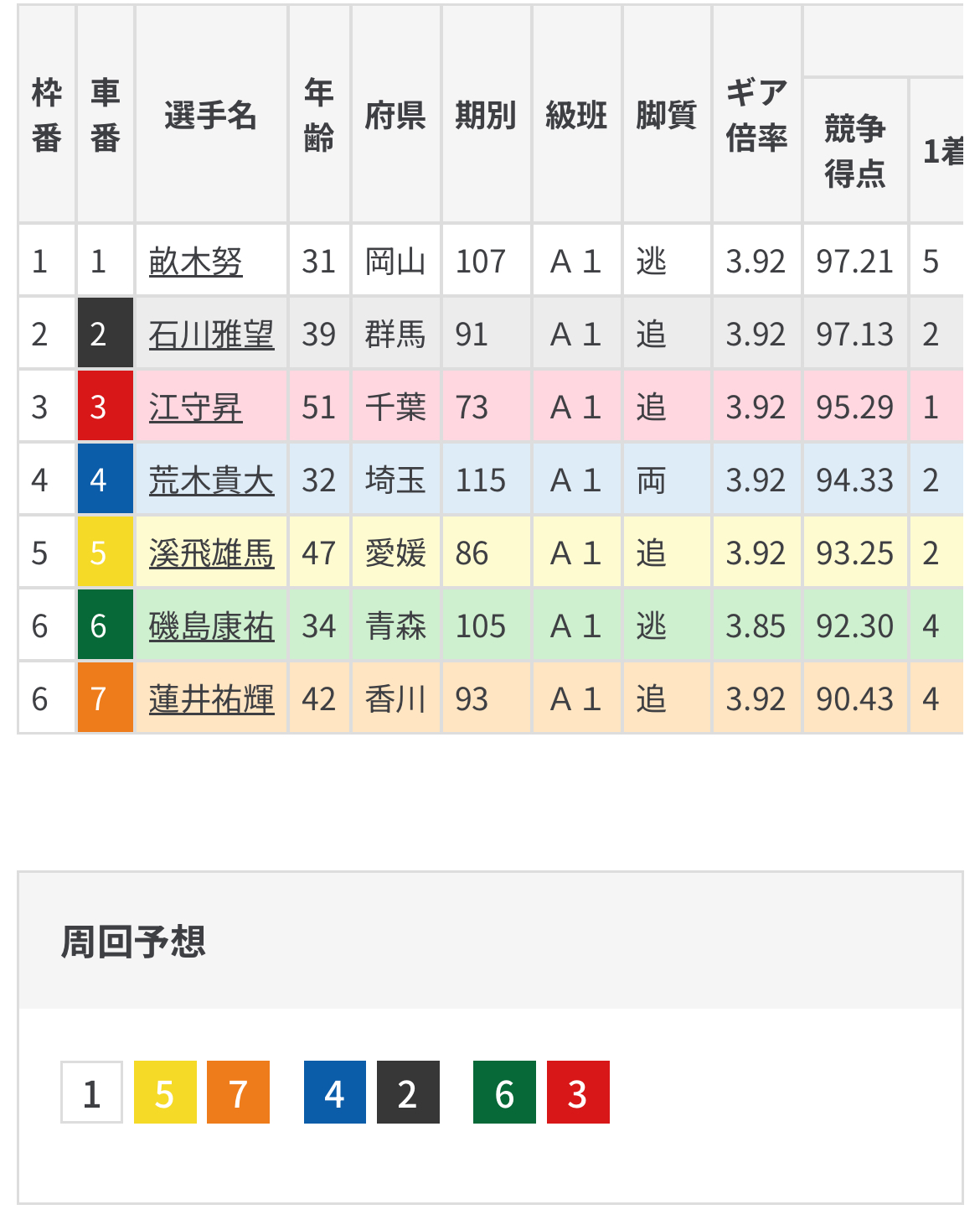 畝木が先行なら後ろからの仕掛けは厳しく番手、溪とのゴール前勝負となりそうも近況から畝木の押し切りをアタマにして狙います。