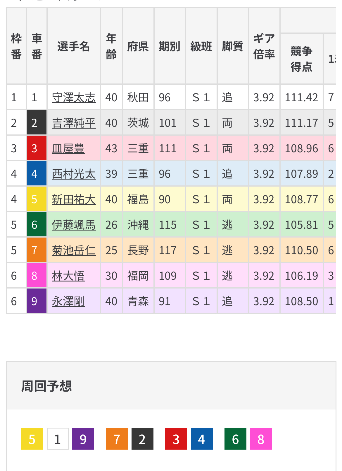 冒頭で書き下ろしましたがそれでも技は伊藤颯馬、皿屋よりかは上ということで前中団確保なら新田の台頭に番手守沢となる。