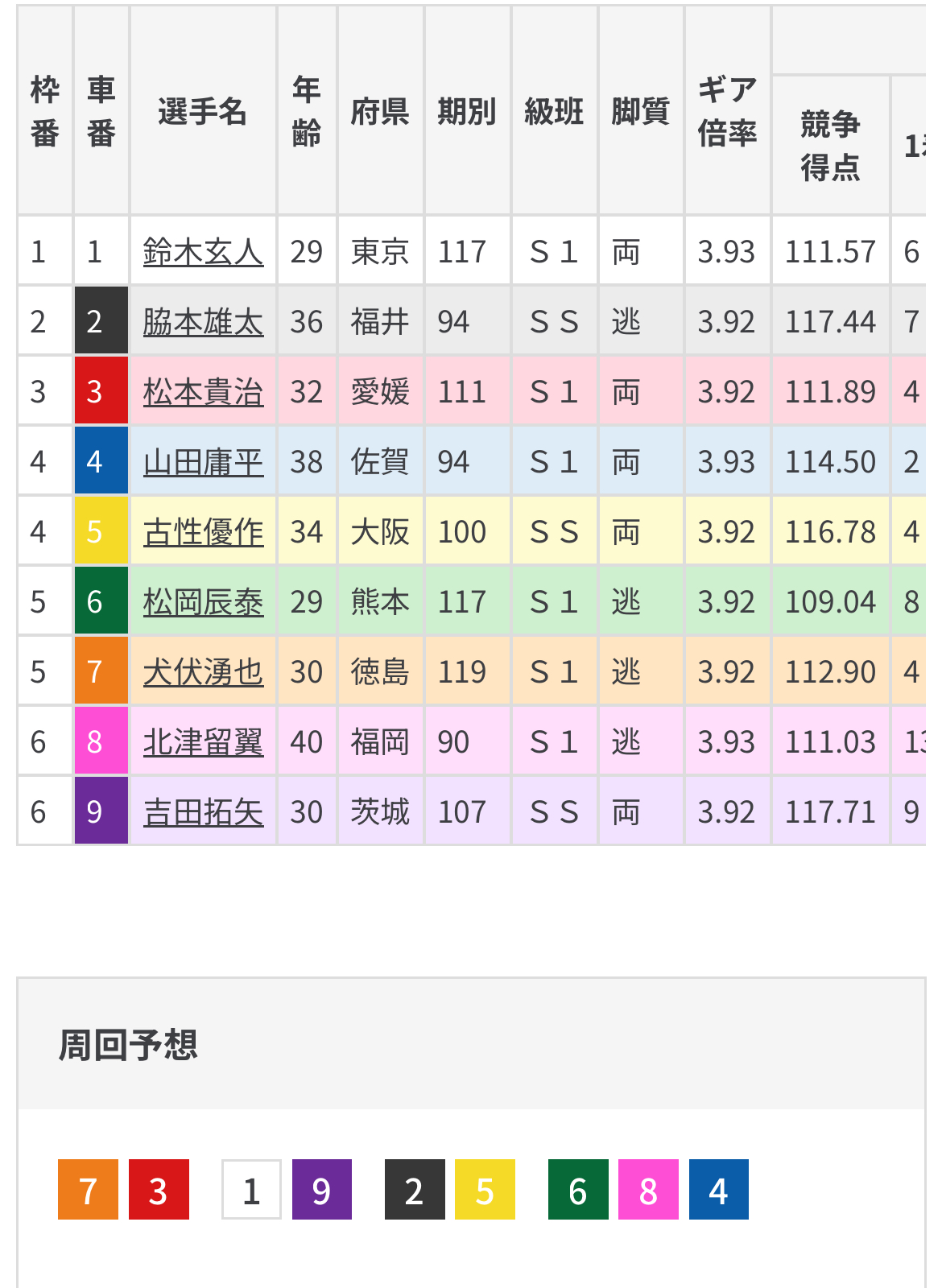 今までの古性ならなんなくつけ切っていたものの寺崎の捲りに口が開き付け直したものの伸びを欠き郡司に間を取られる3着の初日を見ると脇本につけ切るのは厳しいだろう。