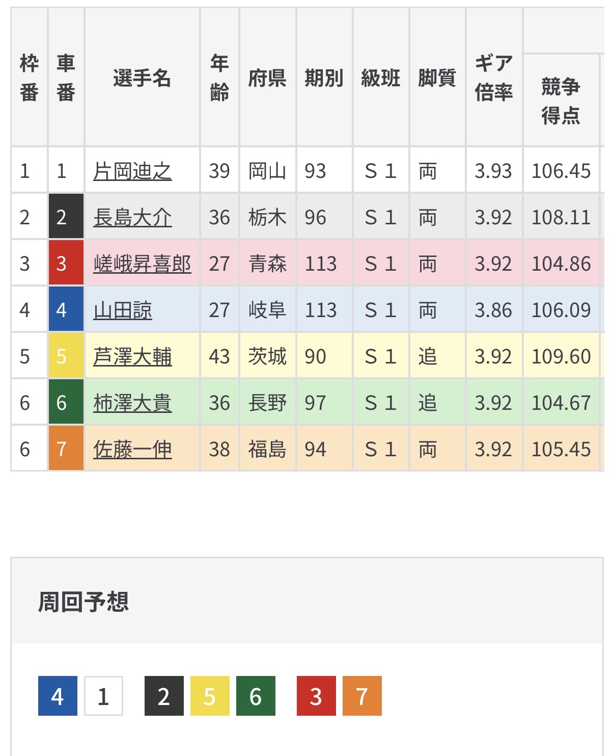 それに積極型は不在で番手は信頼ある芦沢ということも考えると先行は長島とみてその番手芦澤から狙う。