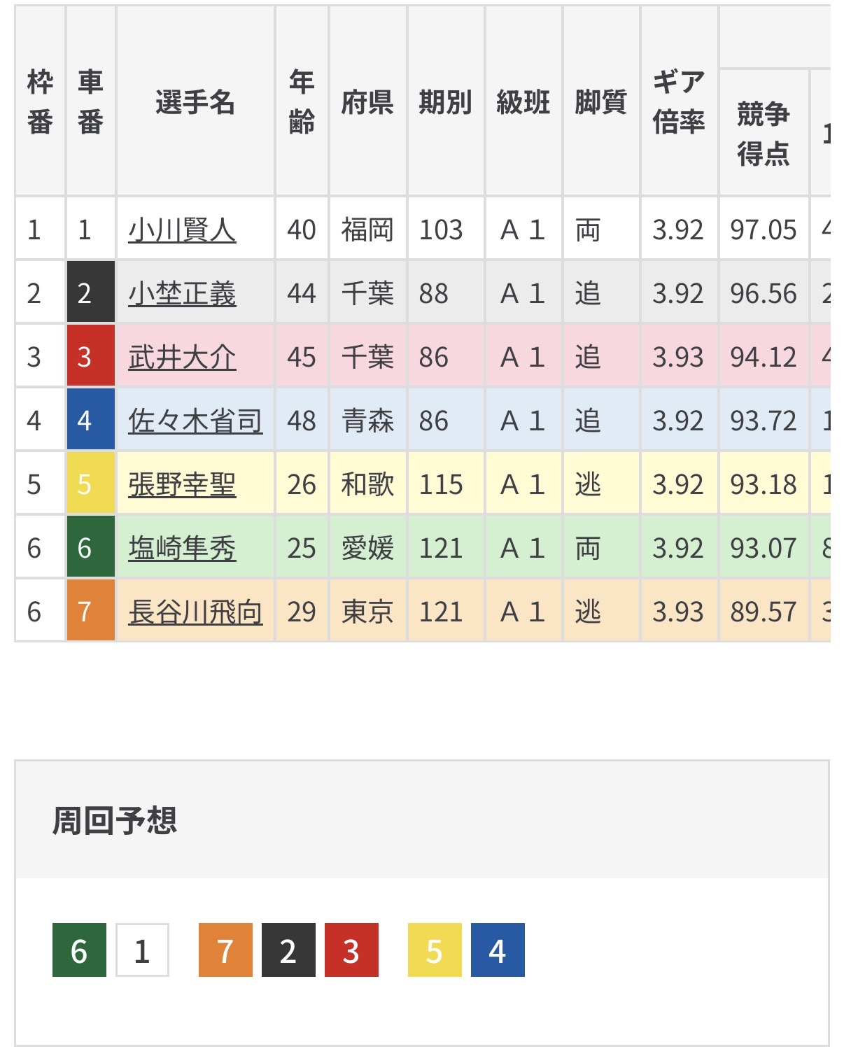 張野と同タイプの塩崎は特選なら多少無理してカマシ、捲りとなればタテ脚はある小川の連対。