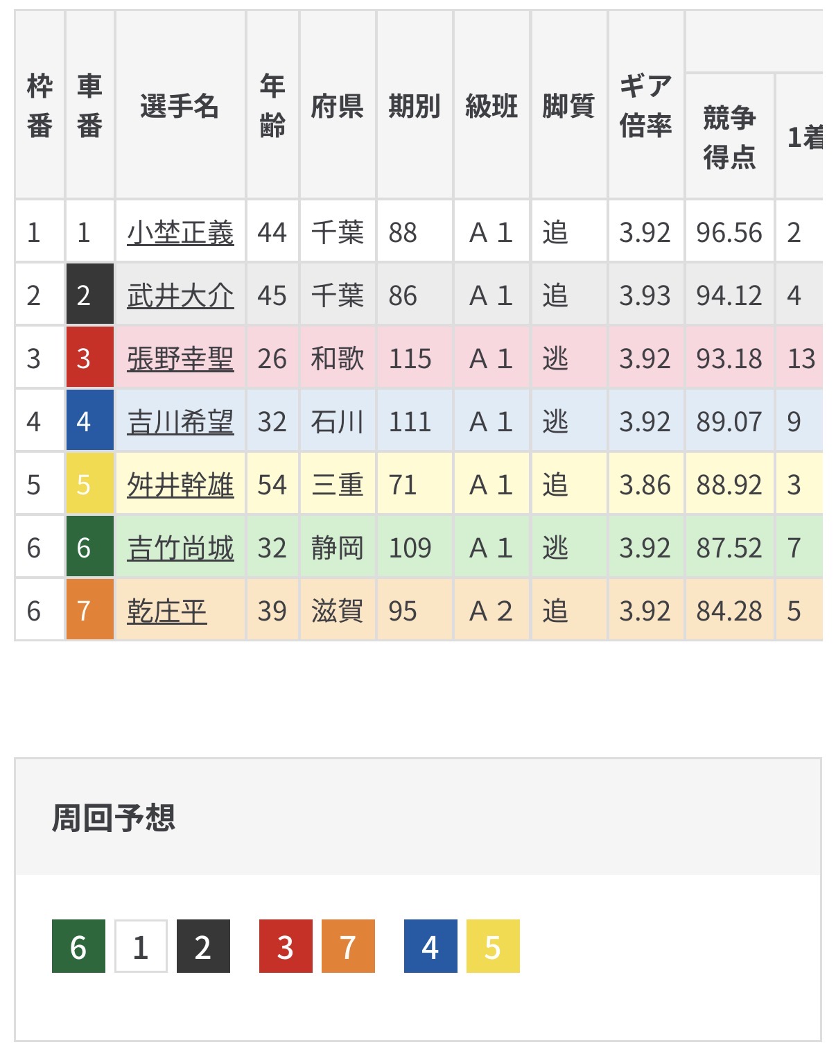 スタートは3番手武井が取ってくれればあとは吉竹がブンブン駆けてくれれば張野の出方を警戒しながら小埜がタテに踏むことになりそう。