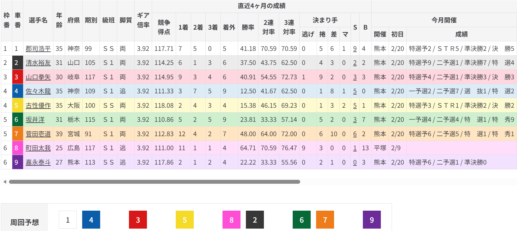 位置取りはピカイチな③山口と⑤古性がしっかり逃げのラインの後ろにおさまるか。