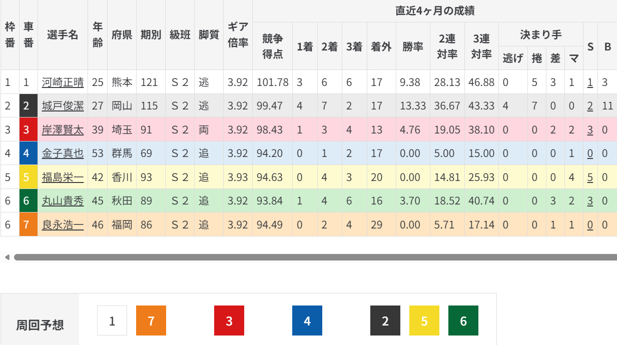 ここで①河崎が突っ張るかどうか、②城戸が仕掛けるのかどうかだが、①河崎が逃げの時と捲りの時どちらも想定したい。