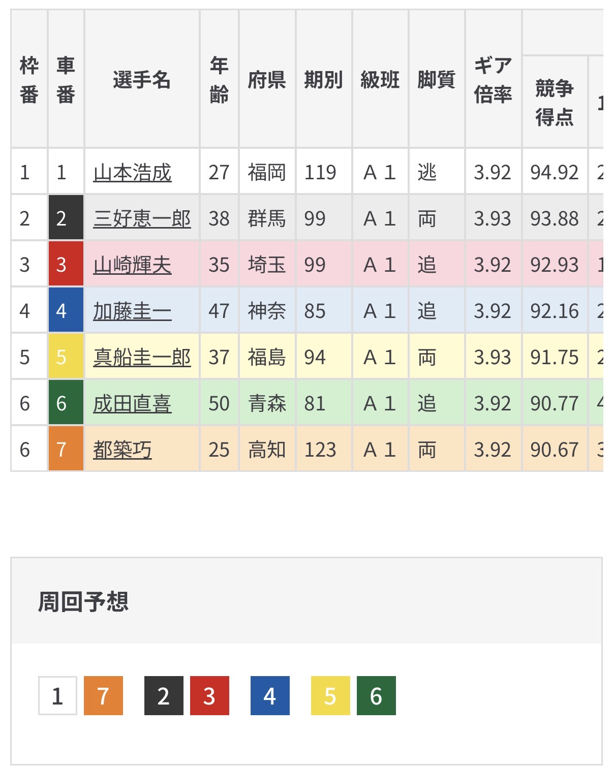 真船よりまだ長い距離踏める三好が一旦斬ったところを山本がカマしてきたら3番手に収まれば勝負圏は少しありそうでそのまま流れ込みに期待。