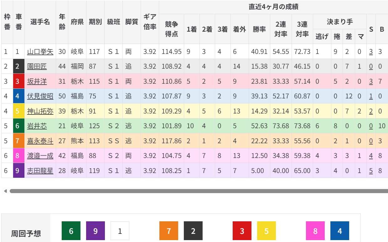[大垣11R : S級準決勝] (民間締切時刻 15:39)