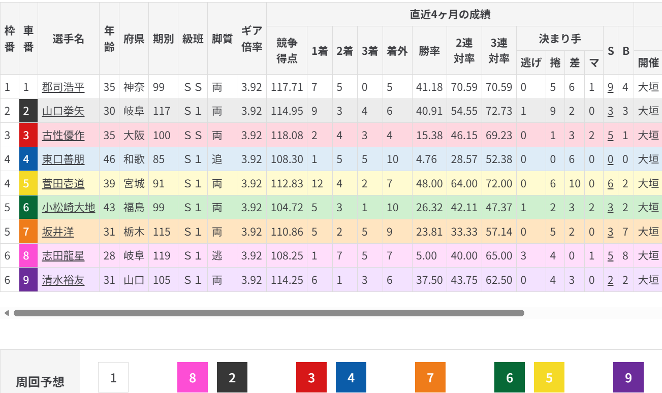 ただ①郡司選手と③古性選手の位置取りが鍵に。