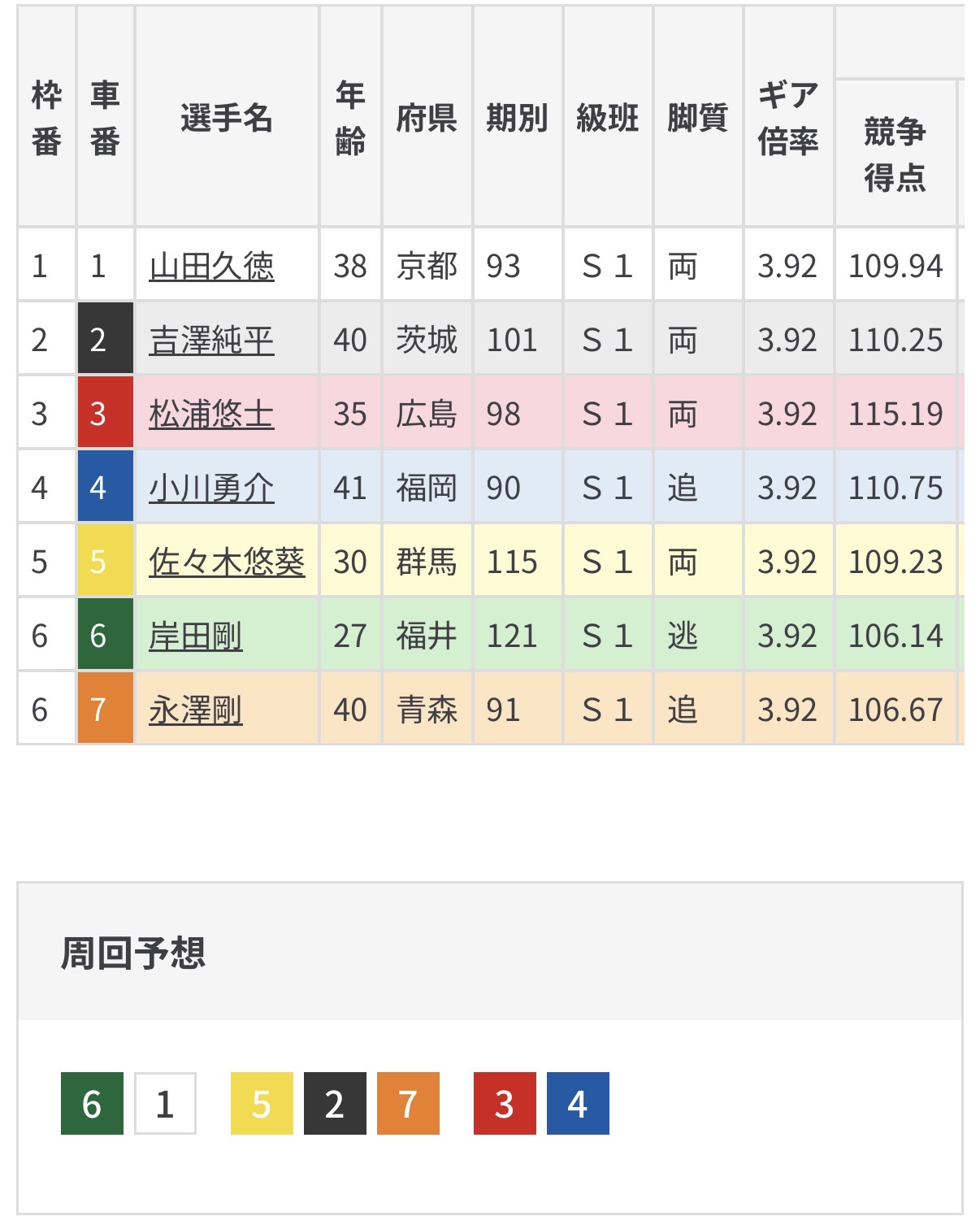 松浦が早めに仕掛け吉澤と被ったときは吉澤の追走が甘くなる場面があればそのときは岸田の番手から山田の抜け出しとなる。
