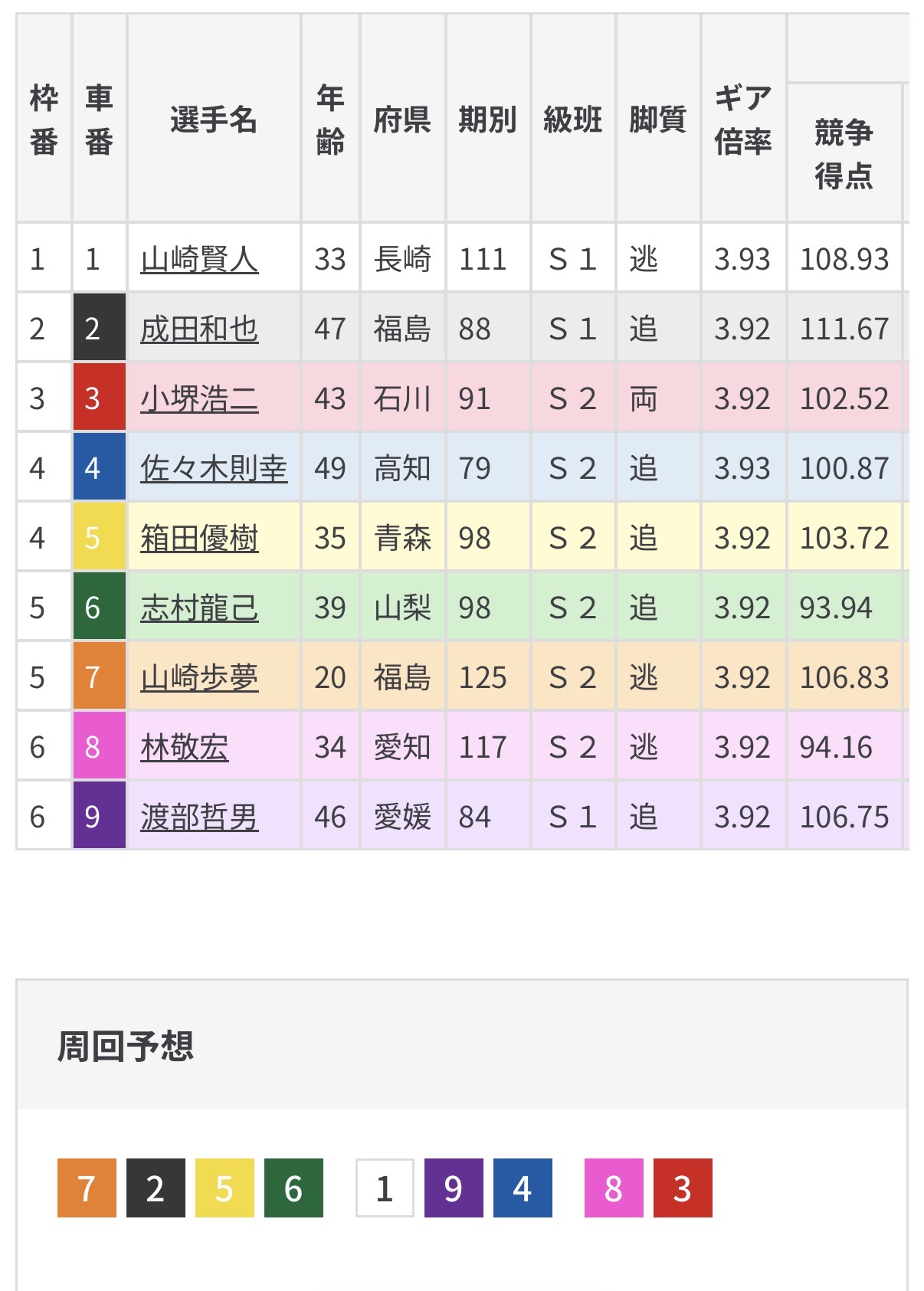 昨年末に競技引退し競輪に没頭の山崎賢人は逃げるレースが増えているだけに歩夢に先手は渡さないだろう。