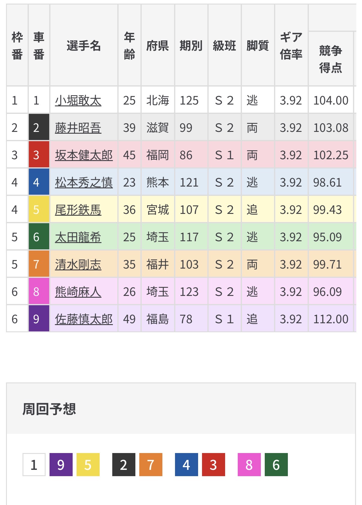 今日の小堀も後ろは慎太郎しかも唯一の3車なら先行とみて間違いないだろう