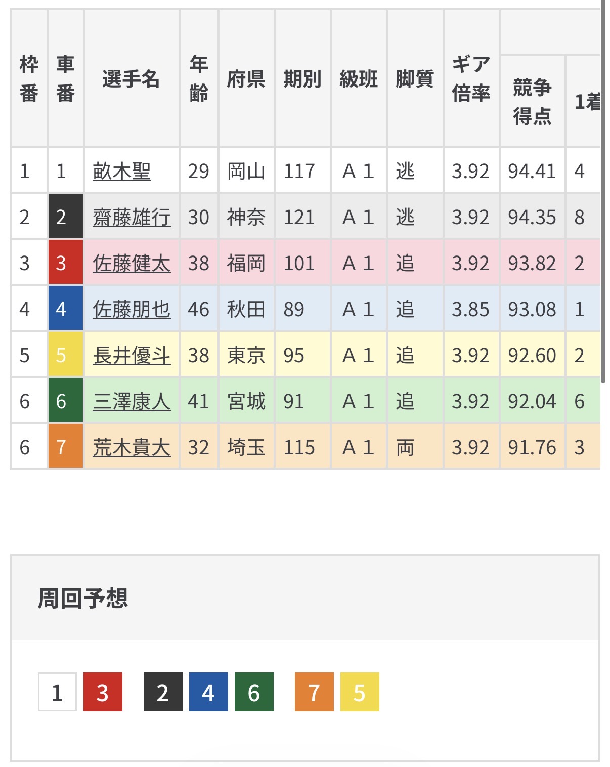 畝木は6番手に置かれることになるがそれを嫌って畝木が早めに叩きにいけば齋藤との叩き合いとなり長引けば伏兵荒木の捲りごろとなる。