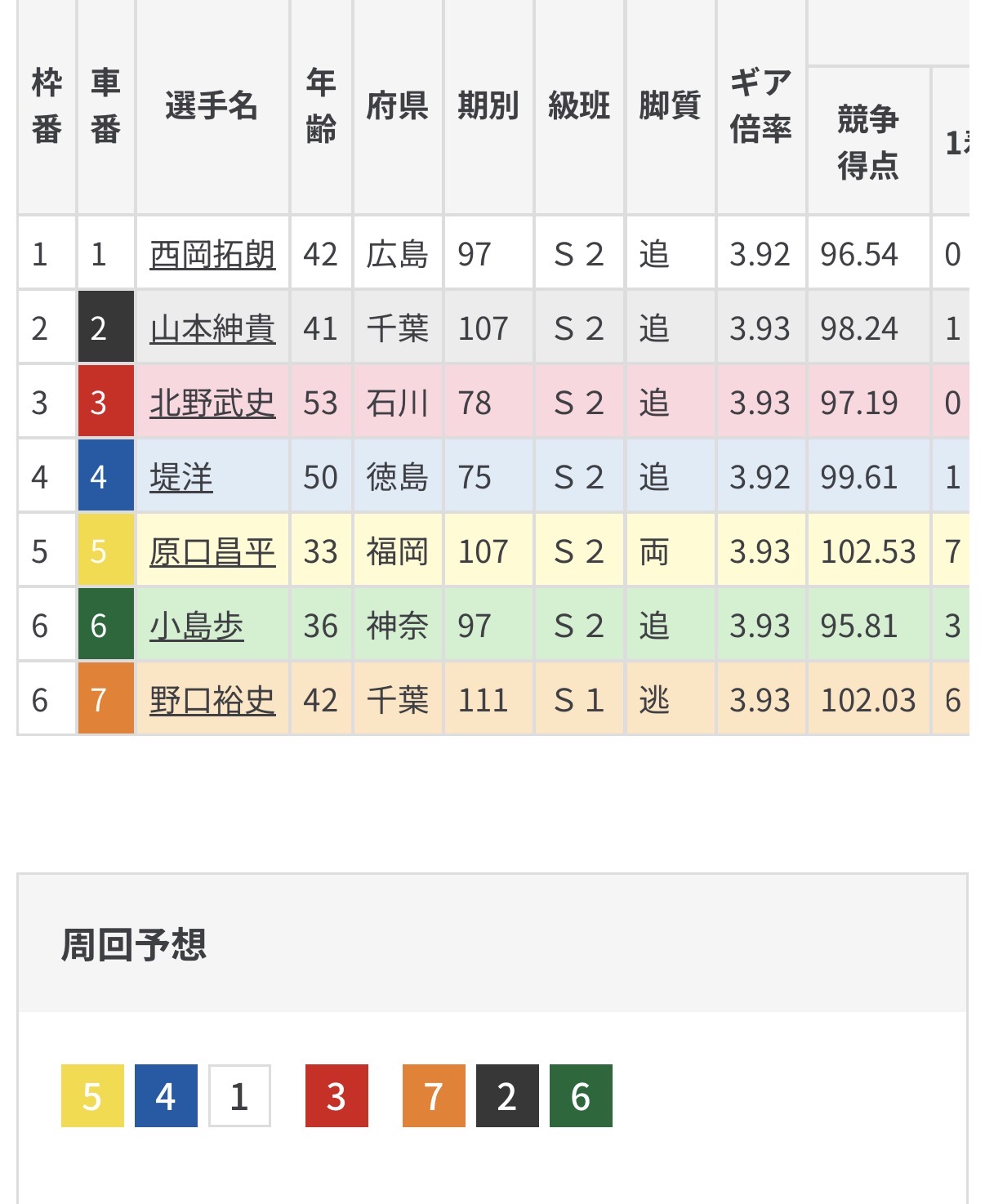番手のもつれは原口ラインとなり野口の相手は原口ラインから狙う。