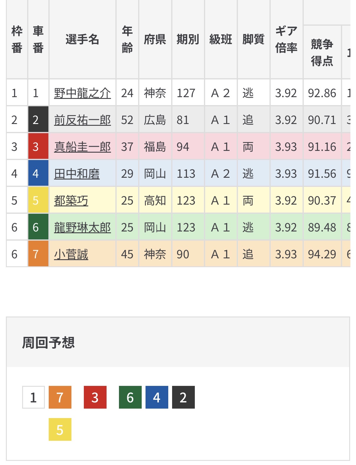 後ろの小菅は都築との競りとなり仕掛けも難しく相手ラインは岡山コンビの二段駆けと単騎に自力ある真船が控えている。