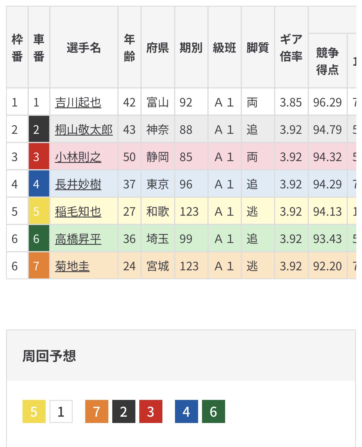 埼京勢の上昇を叩く3車ライン菊地が緩めた隙に一気に叩く稲毛となりそうでそのまま吉川との一騎打ちとなりそう。