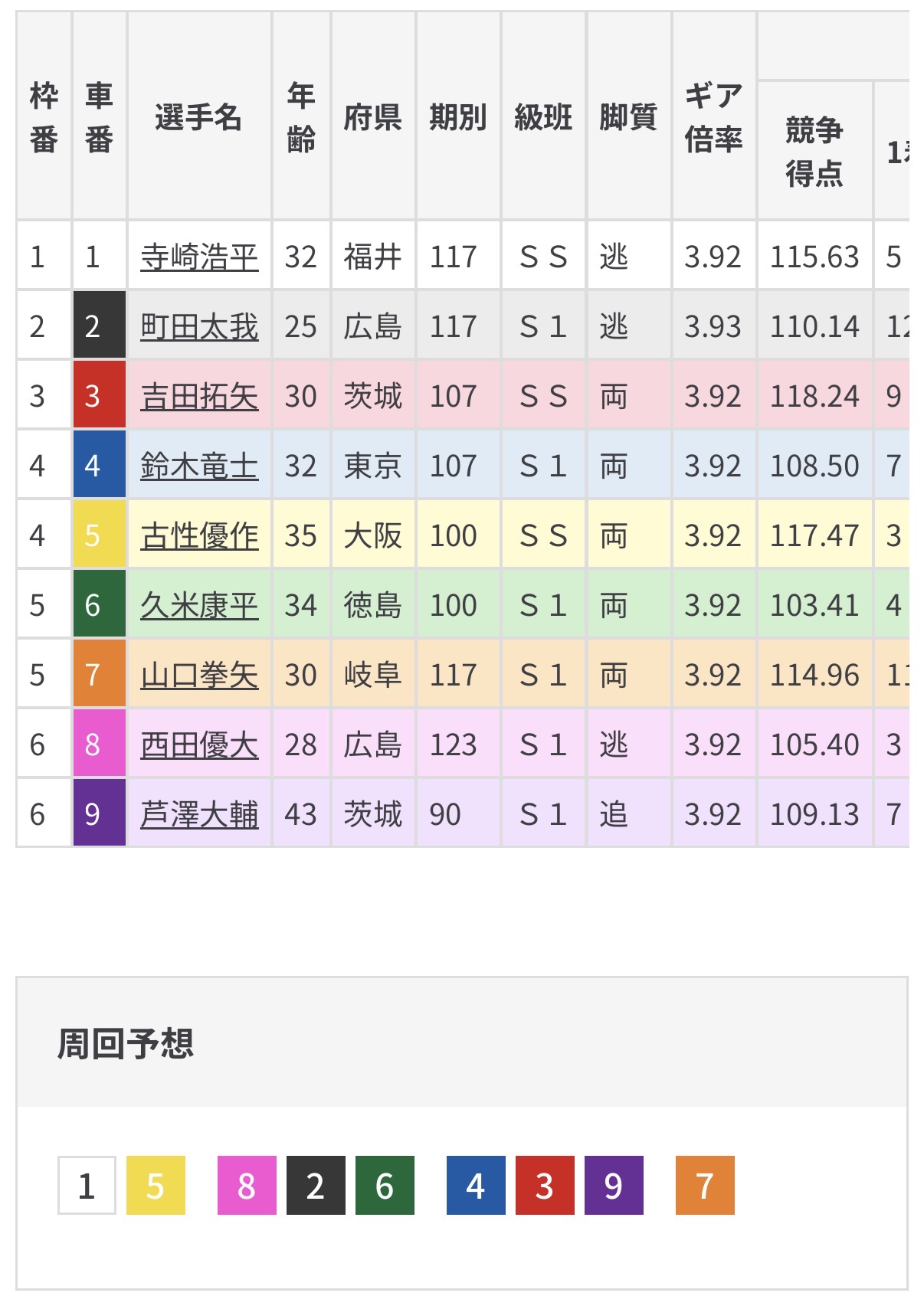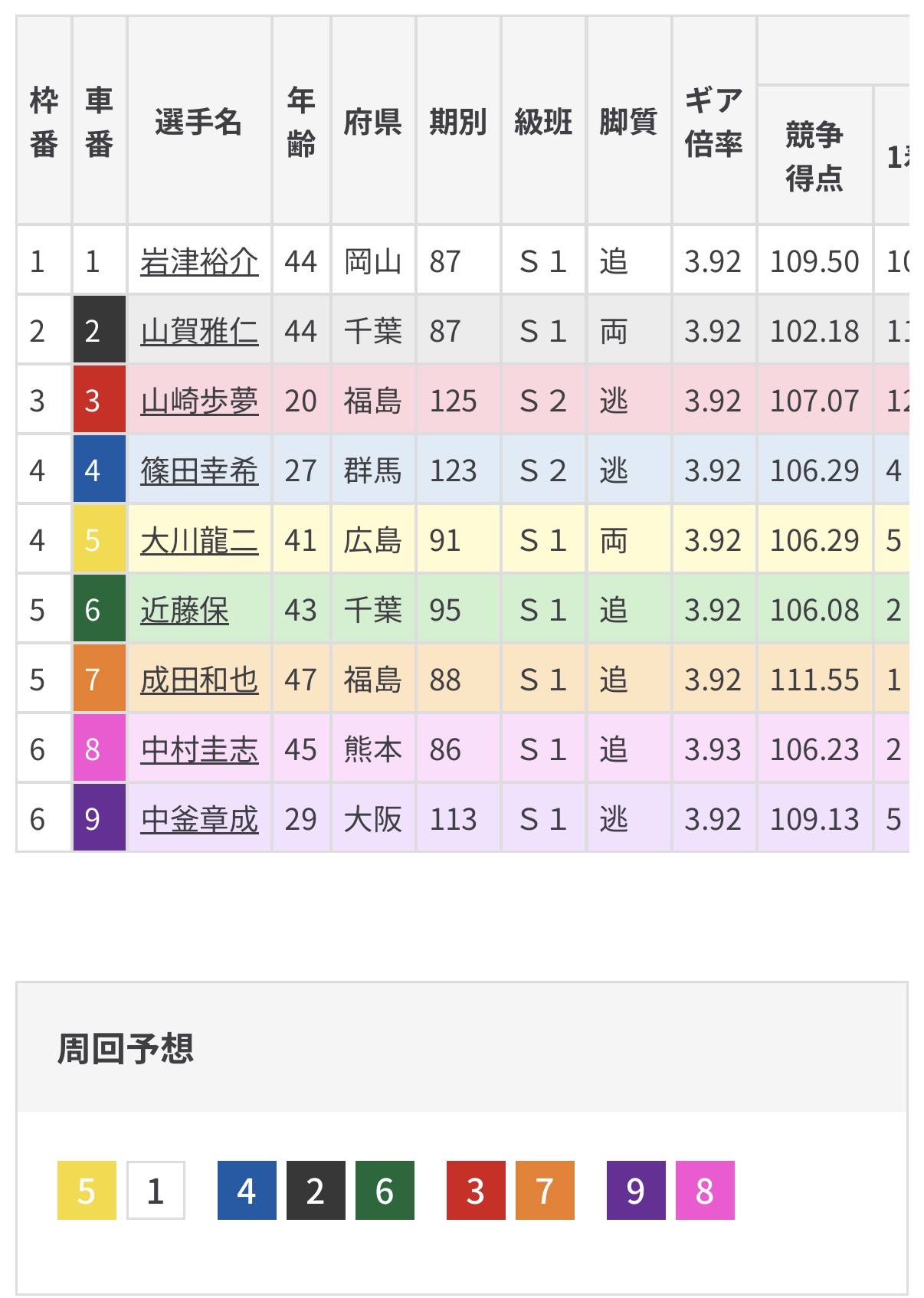 篠田、中釜と先行選手ではなく本格的に先行勝負するのは山崎となり主導権を取ることになりそう。