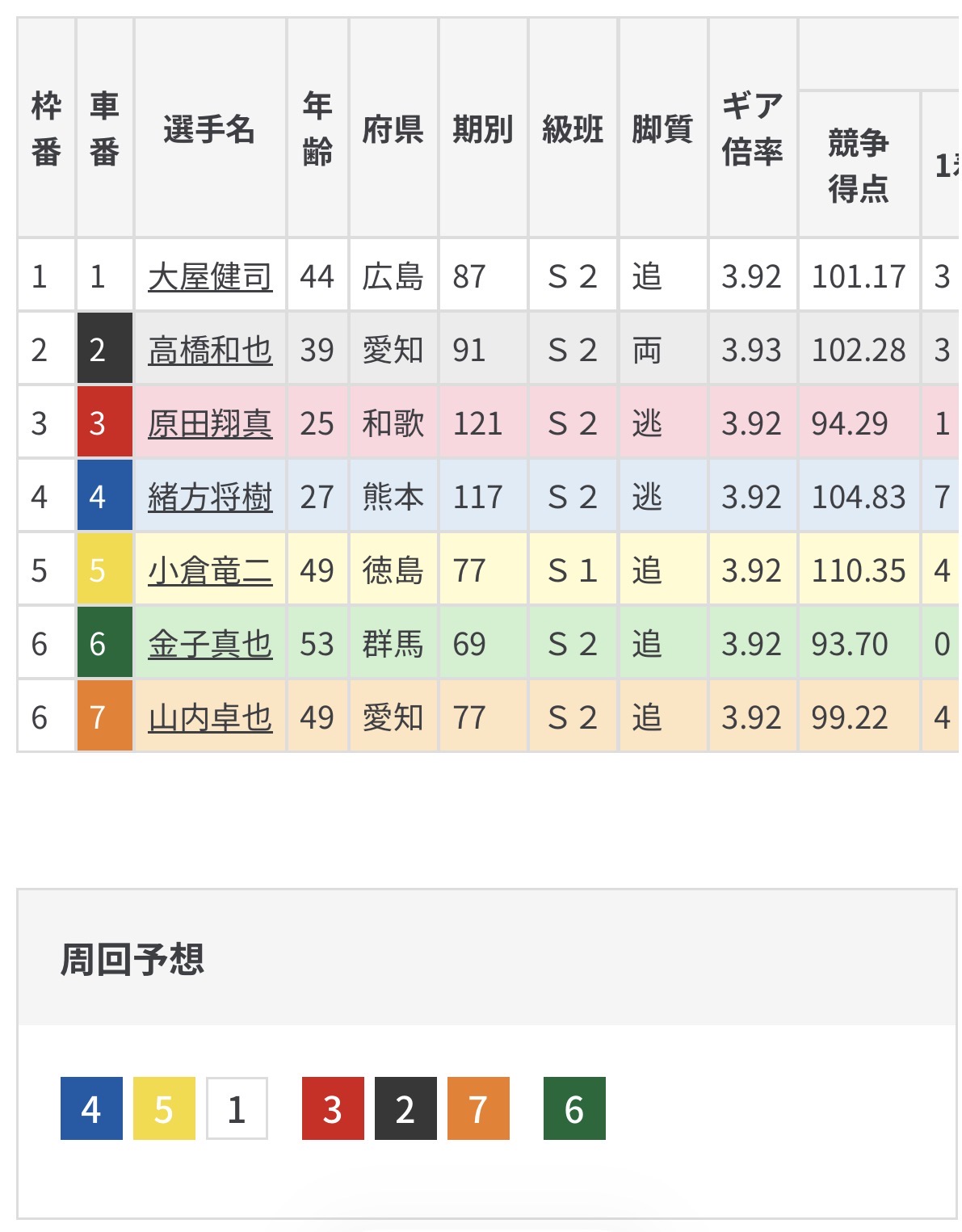 どちらにしても原田の先行となりそうで番手の高橋が恵まれることになりそう。