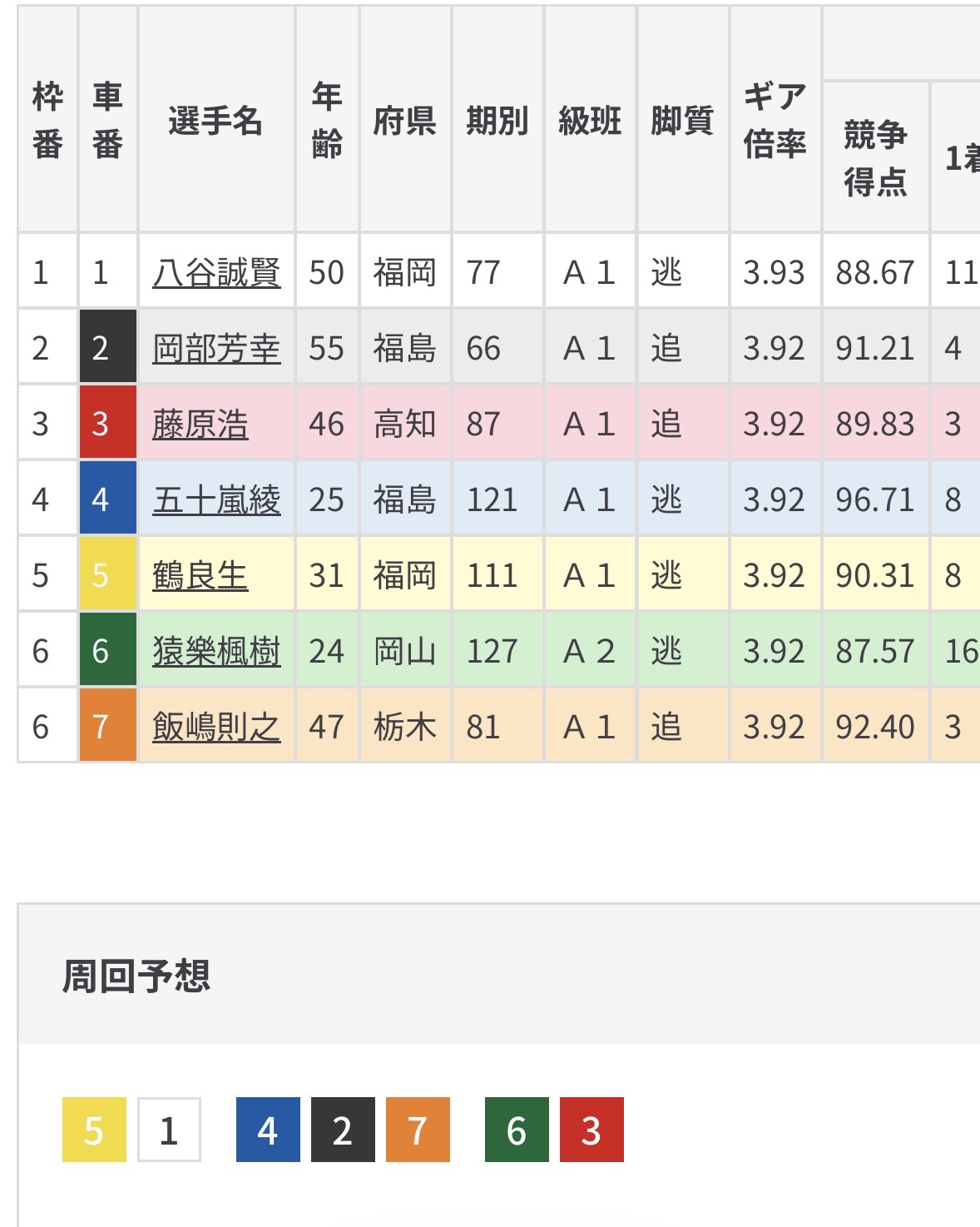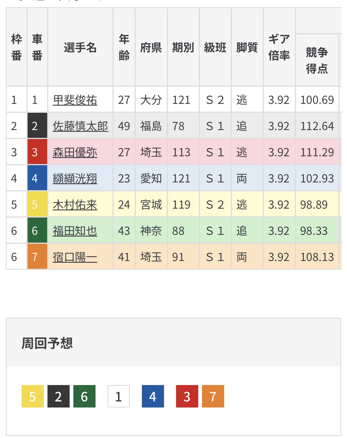 相手に慎太郎、森田のGI組に加えて甲斐をマークしそうな単騎纐纈となる。