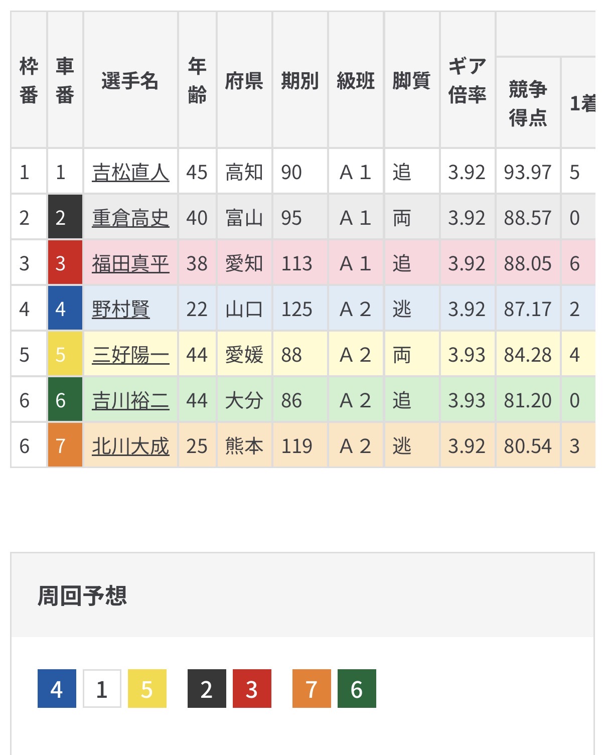 相手は番手の福田、先行する野村の番手吉松から野村の逃げ残りは一考。