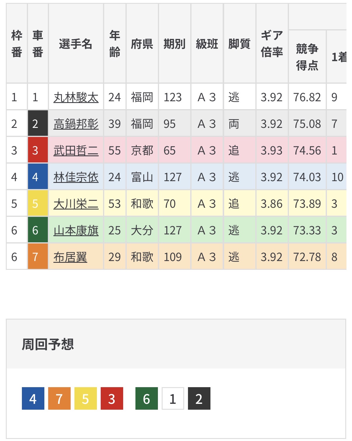 穴目にはベテランの大川、武田が内を狙って3着は狙う。