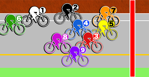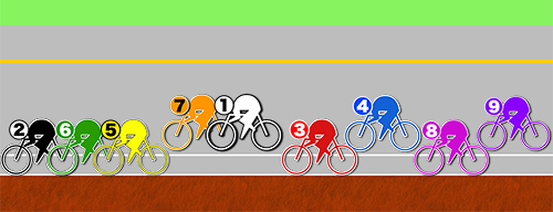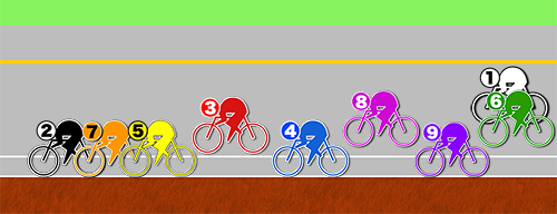 この形からあとは単騎勢が追い込んでくる所に合わせて、❼古性が番手から出ていく。