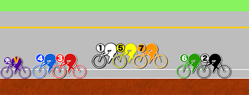 もし❶北井が前受から突っ張った場合は⑤松坂の付きバテでそこを差す⑦萩原の1-7-5を抑えとして持っておく。