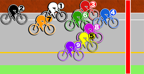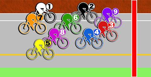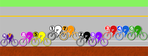 この時は❷昼田の逃げを捲る❸坂田で山根とのゴール前争いを。