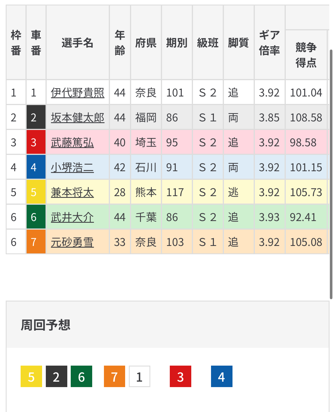 メンバーで最上位得点の坂本健太郎は先行のハコ回りは有利なポジションだけに誰かに番手狙われることもありそう。