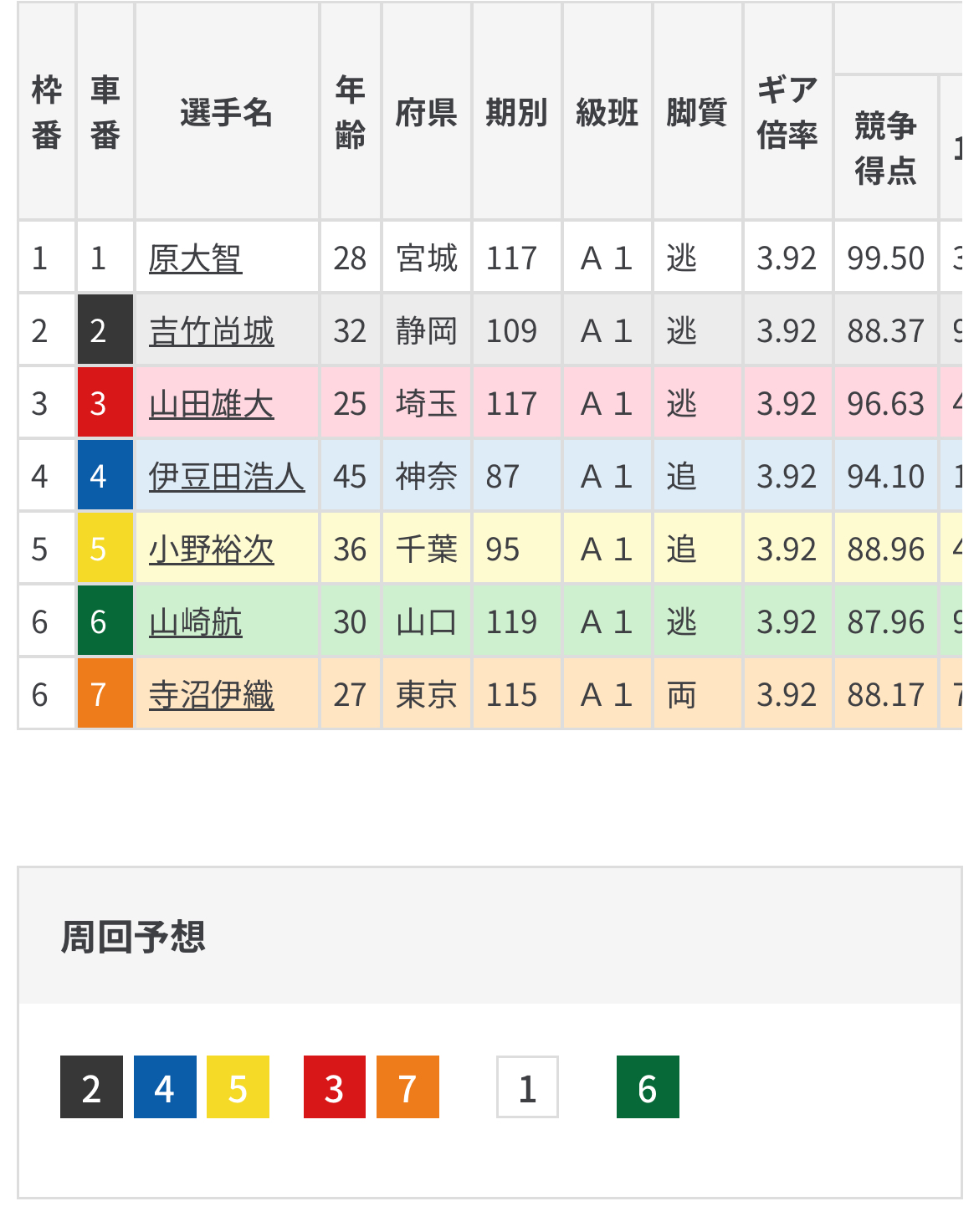 今回立ち遅れが目立つ山田雄大は3着に置く。
