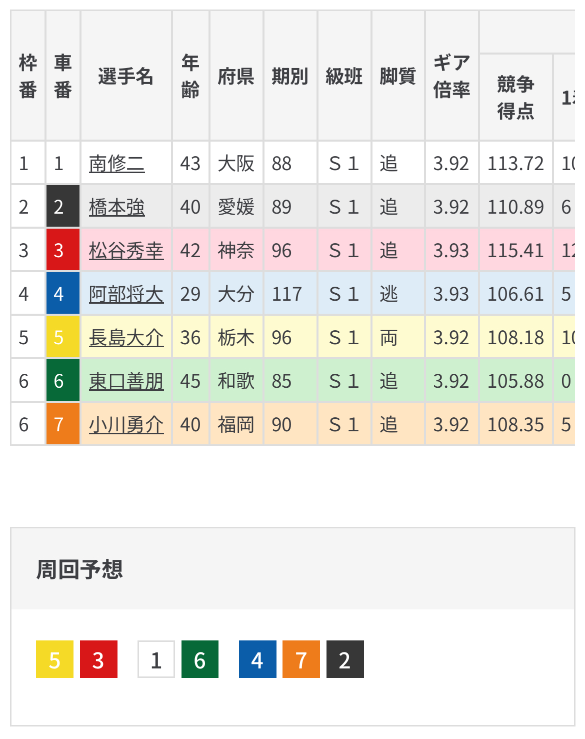 このメンバーなら阿部は比較的楽に先行できそうな構成で、その展開なら、番手の小川勇介が有利に展開を運べられる。