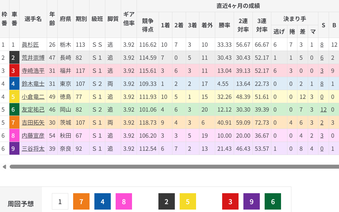 ③寺崎も積極性が増したので自分だけの捲り追い込みにはならないはず。