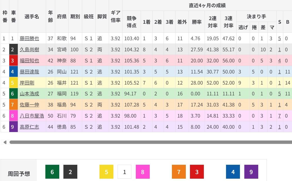 逆に⑤岸田が逃げた場合は、昨日同様⑥山本が強烈な仕掛けを打ってくると見る。