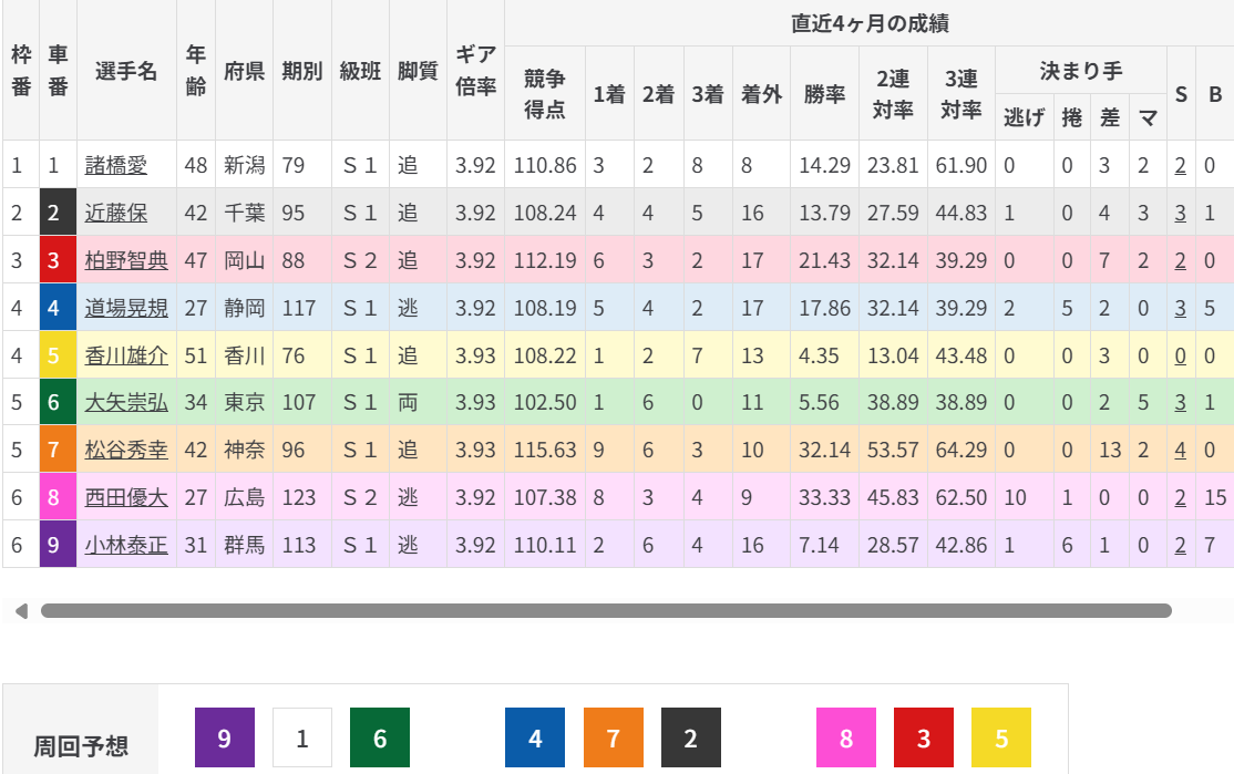 早めに行くなら③柏野に止められるし、遅めに行くなら自分だけ捲りとなって2.3着まで。